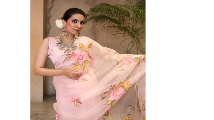 The best way to wear a saree in a classy way is by draping it across the front from the right.